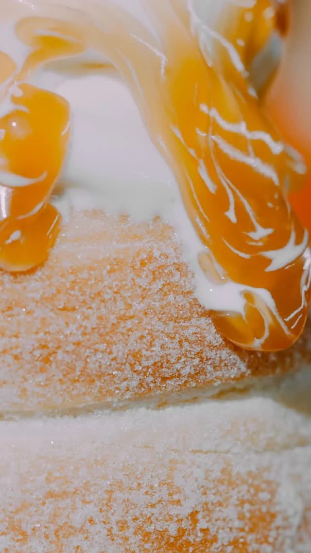 They are hand-rolled dough cones that are made fresh and grilled rotisserie style, creating a unique and delicious twist on traditional soft-serve desserts. The cones are taken off the grill and covered in cinnamon and sugar or specialty powder, and filled with creamy spreads, gourmet soft serve ice cream, delicious toppings, and a decadent sauce on top!